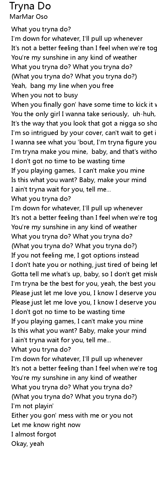 | [01:34.371] | (What you tryna do? What you tryna do?) |
