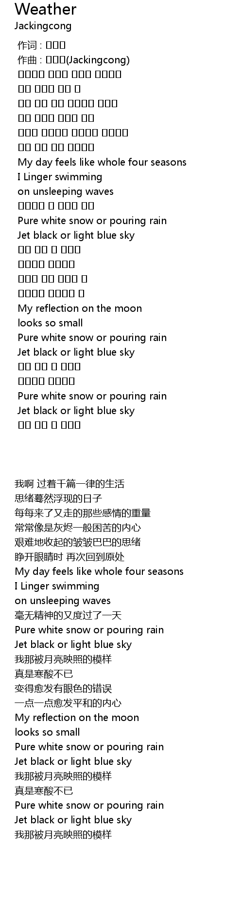 | [00:49.464] | Pure white snow or pouring rain |