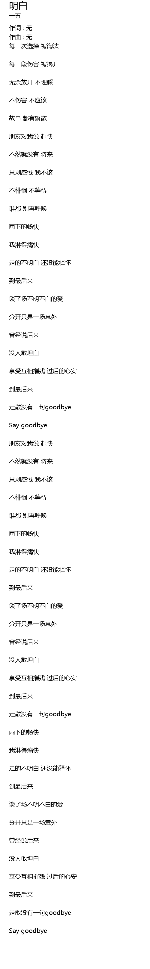 | zou san mei you yi ju goodbye | |