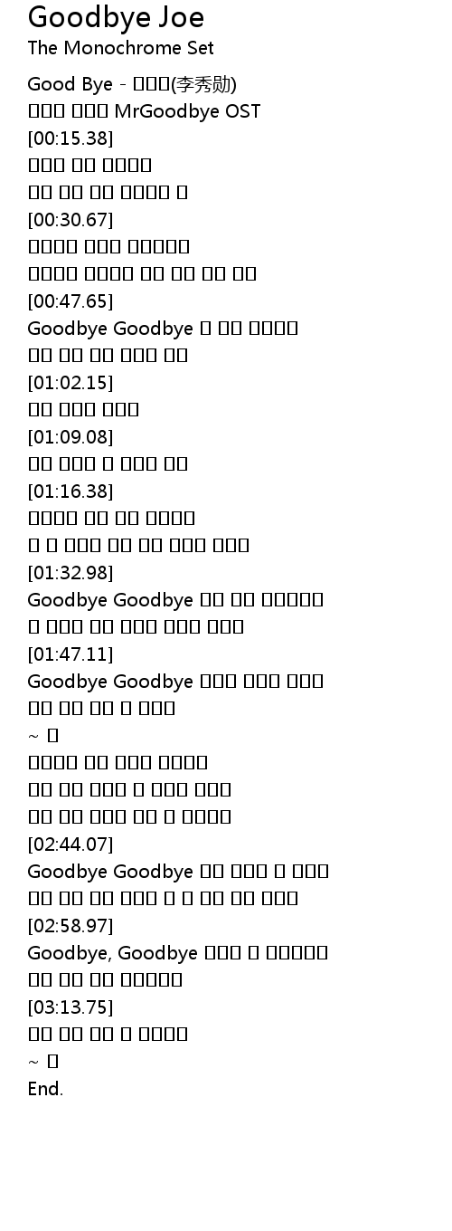 | [02:44.29] | Goodbye Goodbye 다음 세상에 꼭 만나요 |
