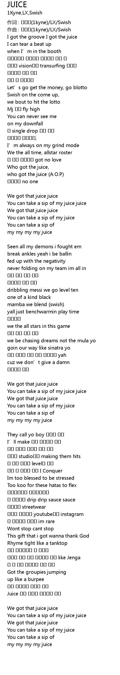 | Who got the juice, | |
