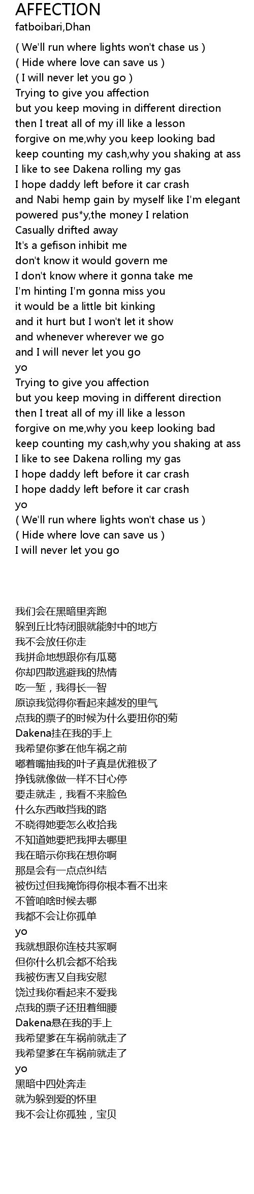 | [00:50.577] | Trying to give you affection |