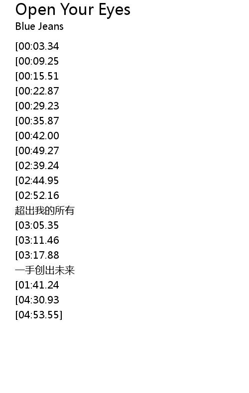 | [04:38.02][04:30.93][04:04.91][03:00.19] | leng kan shi jie Open Your Eyes |