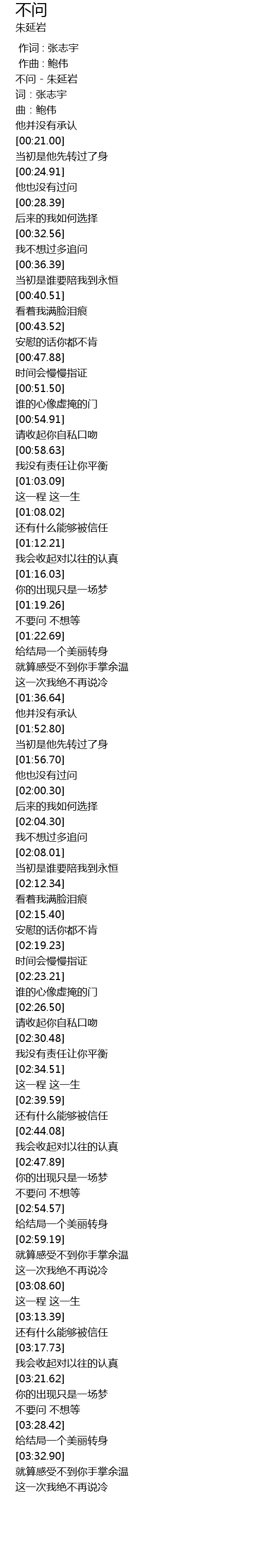 | [00:00.00] | 不问 - 朱延岩 |