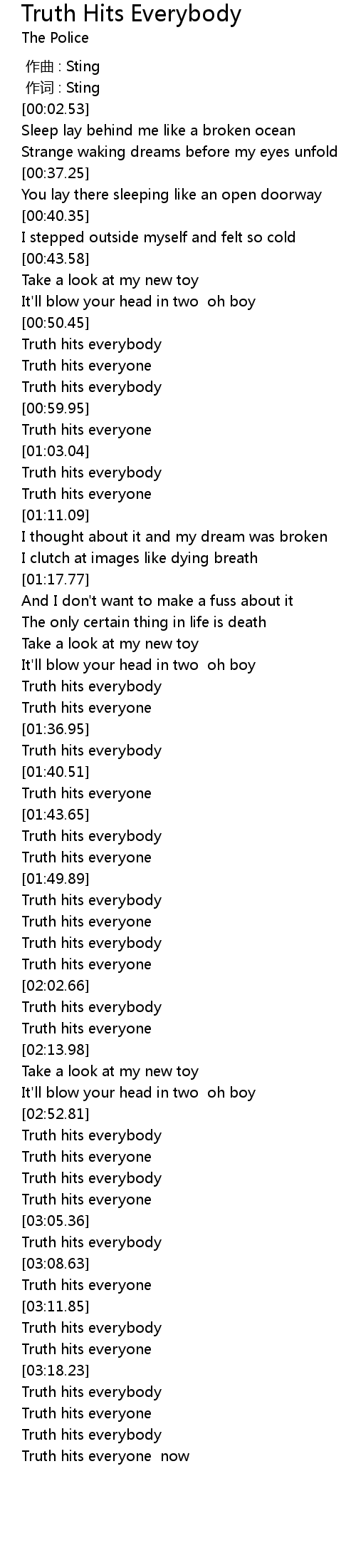| [02:59.92] | Truth hits everybody |