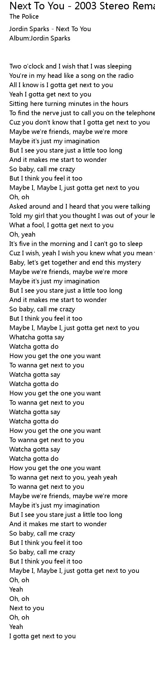 To wanna get next to you, yeah yeah |