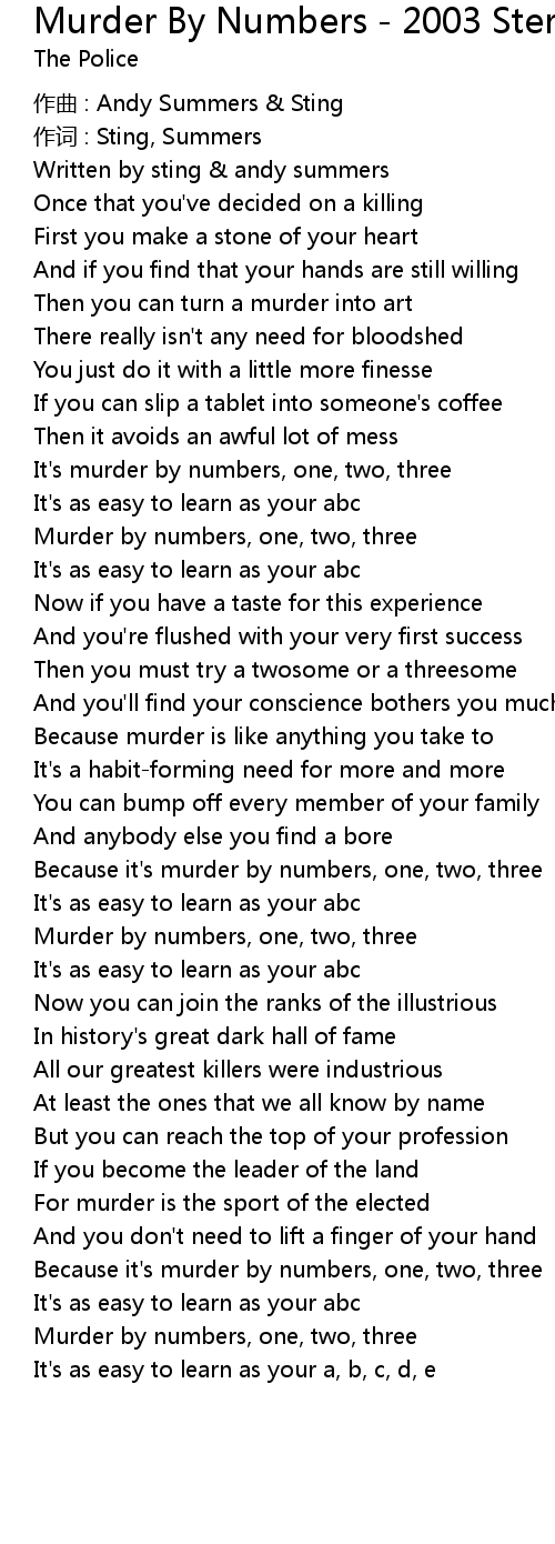 | Song | Murder By Numbers - 2003 Stereo Remastered Version |