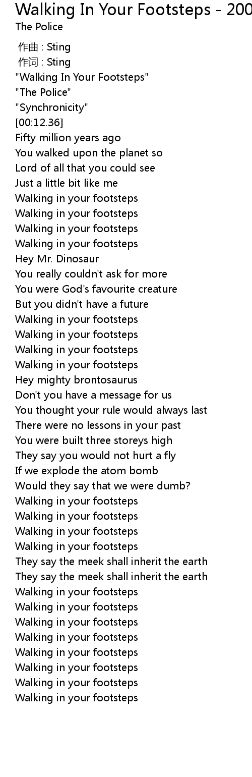 | [00:00.12] | "Walking In Your Footsteps" |