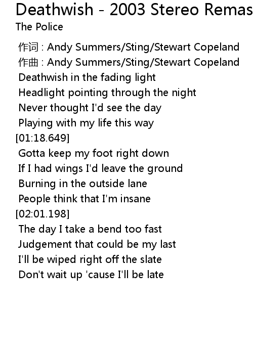| [00:01.000] | zuo qu : Andy Summers Sting Stewart Copeland |