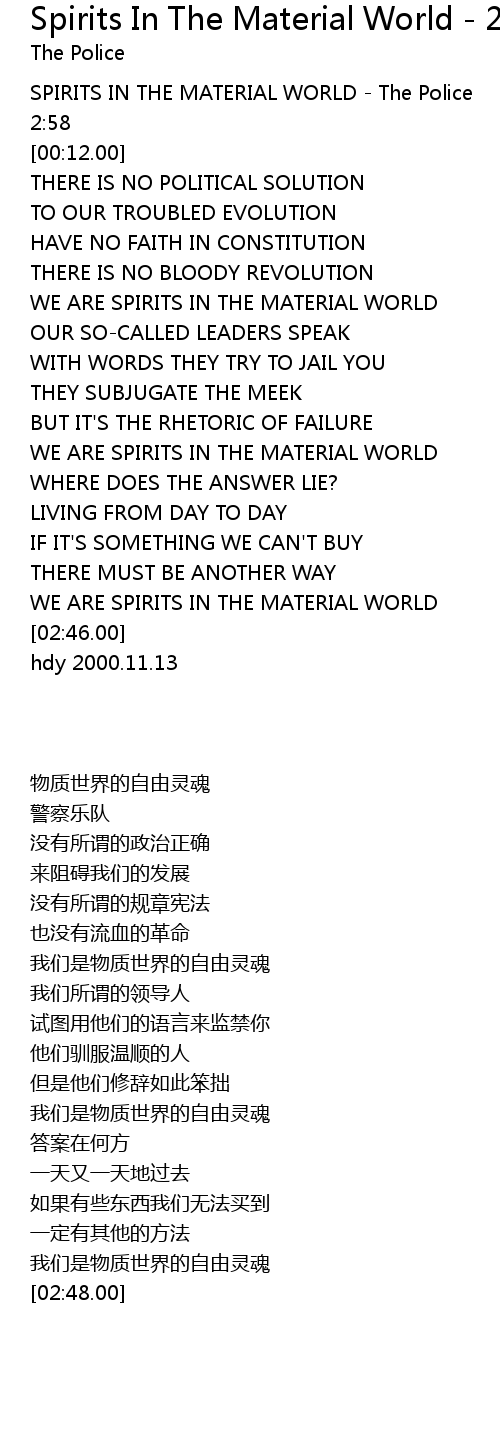 SPIRITS IN THE MATERIAL WORLD - The Police |