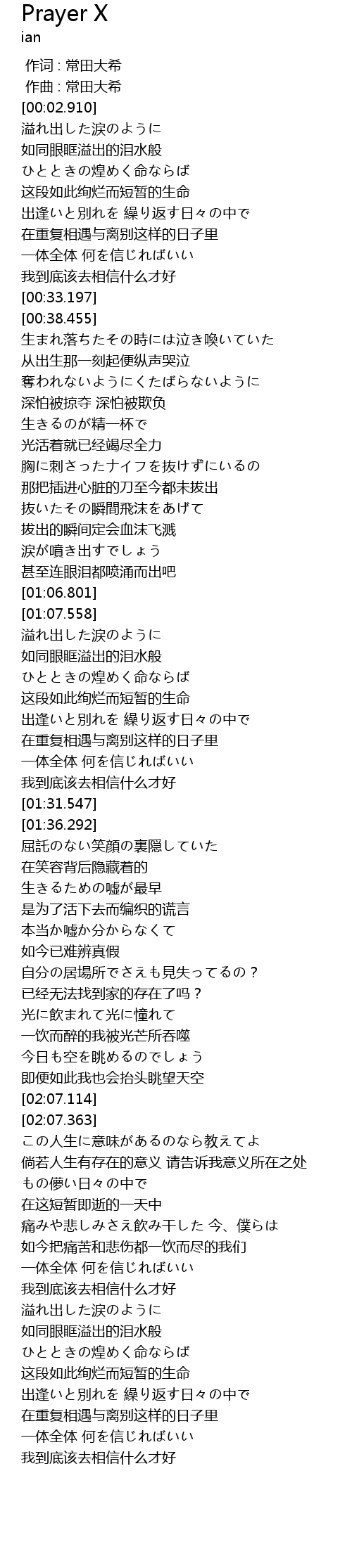 | [02:08.367] | この人生に意味があるのなら教えてよ |