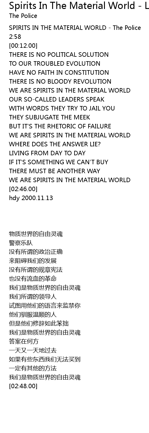 SPIRITS IN THE MATERIAL WORLD - The Police |