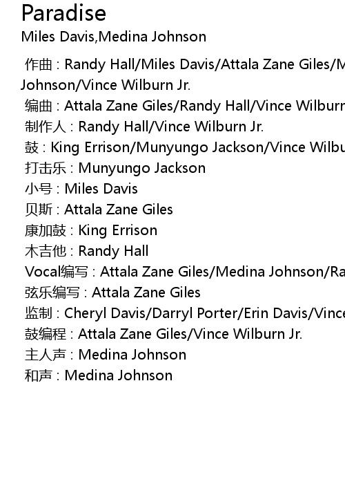 | [00:00.00-1] | zuo qu : Randy Hall Miles Davis Attala Zane Giles Medina Johnson Vince Wilburn Jr. |