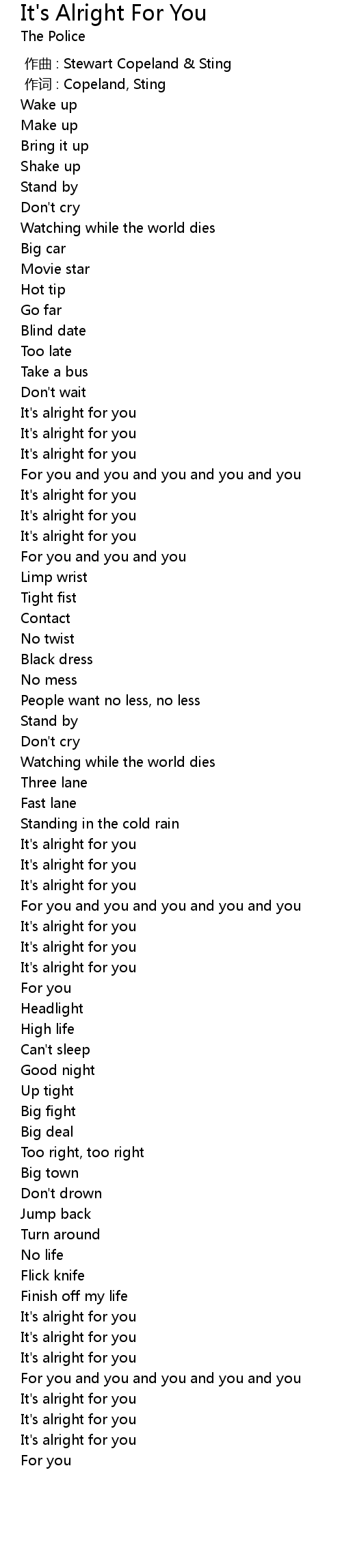 | [00:00.00] | 作曲 : Stewart Copeland & Sting |