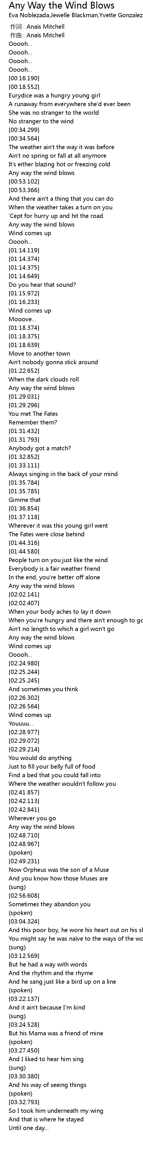 | [00:00.000] | 作词 : Anaïs Mitchell |