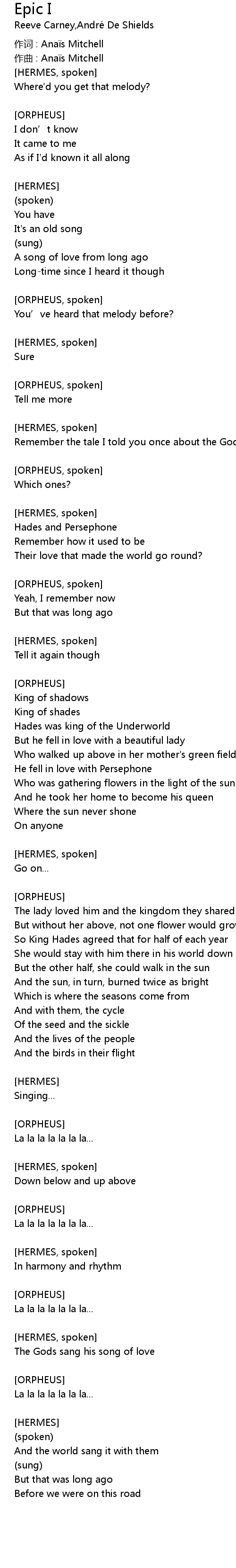 | 作词 : Anaïs Mitchell | |