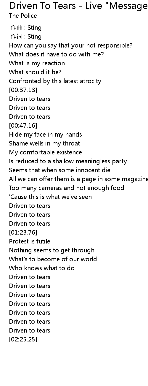 | [01:18.00] | Driven to tears |