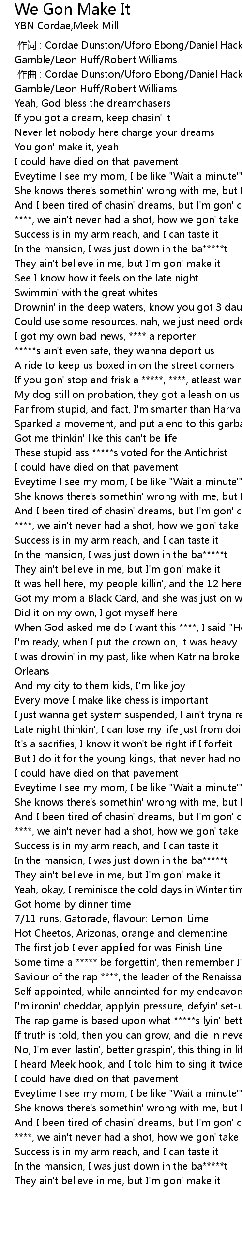 | [01:31.44] | They ain' t believe in me, but I' m gon' make it |