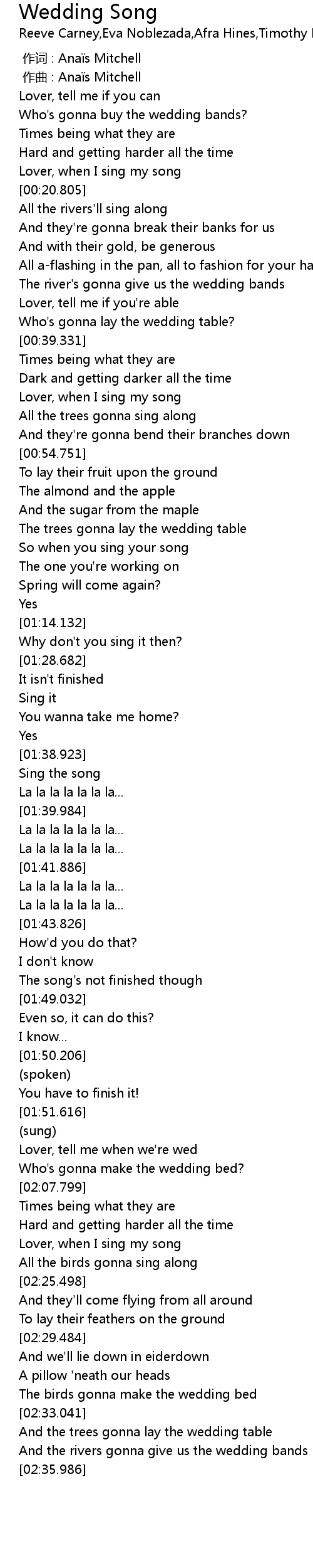 | [00:00.000] | 作词 : Anaïs Mitchell |