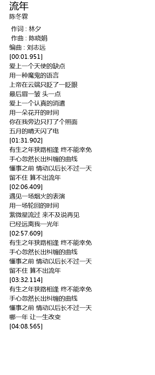 | [01:58.657] | liú bú zhù suàn bù chū liú nián |