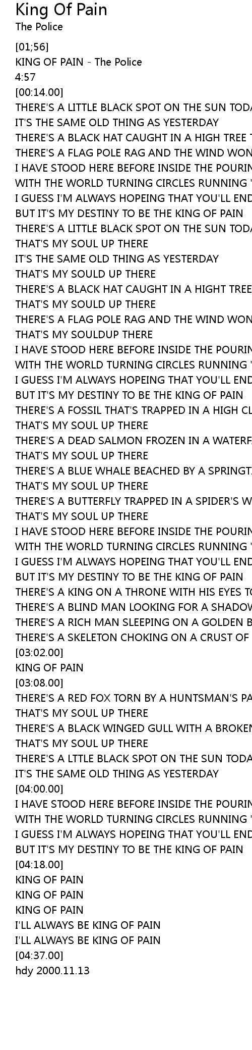 BUT IT'S MY DESTINY TO BE THE KING OF PAIN |