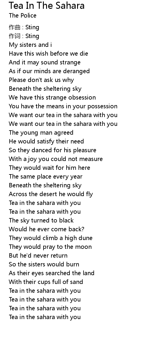 | Tea in the sahara with you |