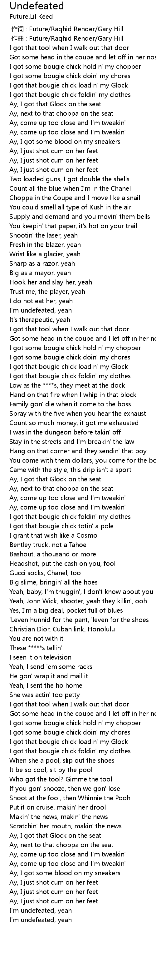 | [00:42.77] | I' m undefeated, yeah |