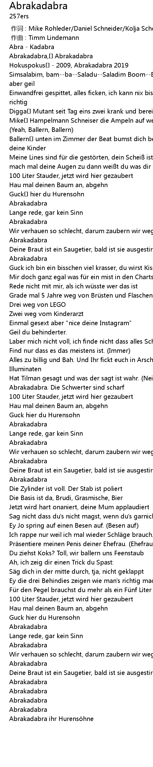 | [02:52.59] | Abrakadabra ihr Hurens hne |