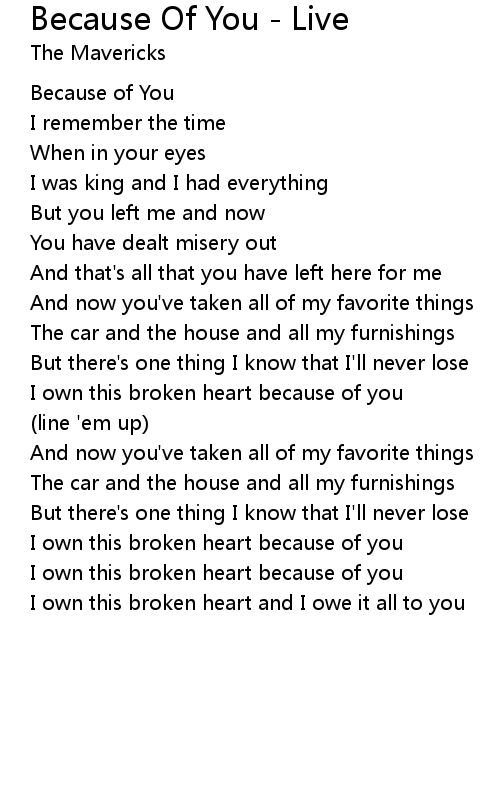 I own this broken heart because of you |