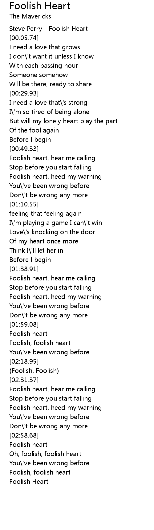 Oh, foolish, foolish heart |