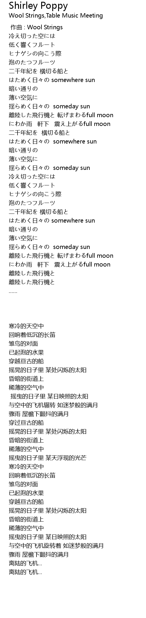 | [03:14.73] | lí lù fēi xíng jī zhuǎn full moon |
