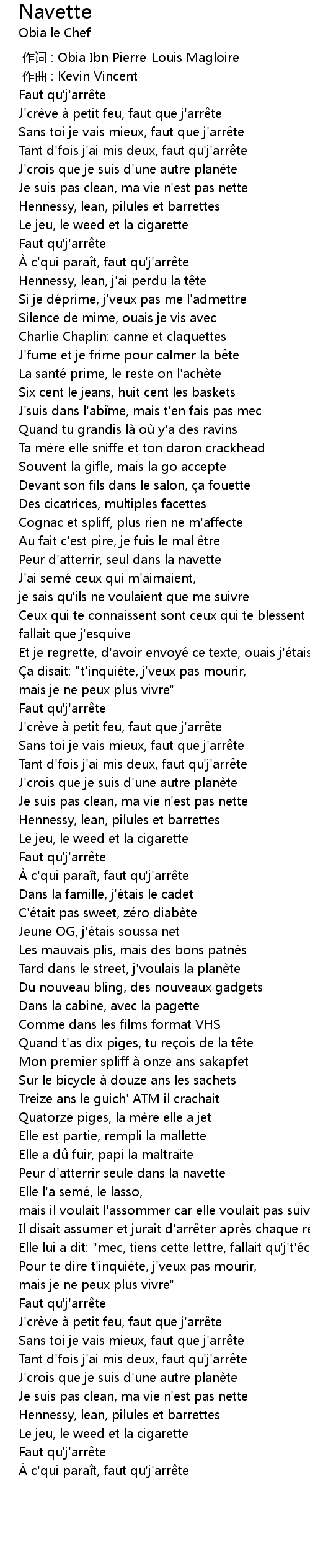 | [02:24.74] | Elle lui a dit: "mec, tiens cette lettre, fallait qu'j't'écrive |