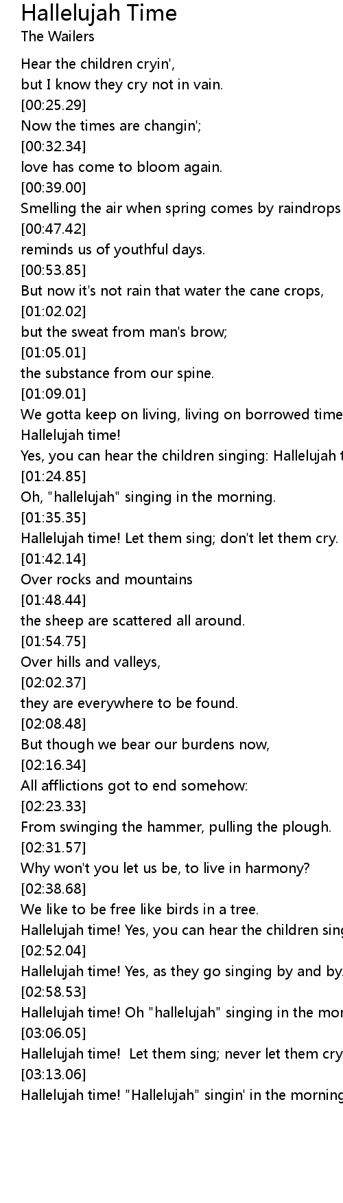 Hallelujah time! Let them sing; don't let them cry. |