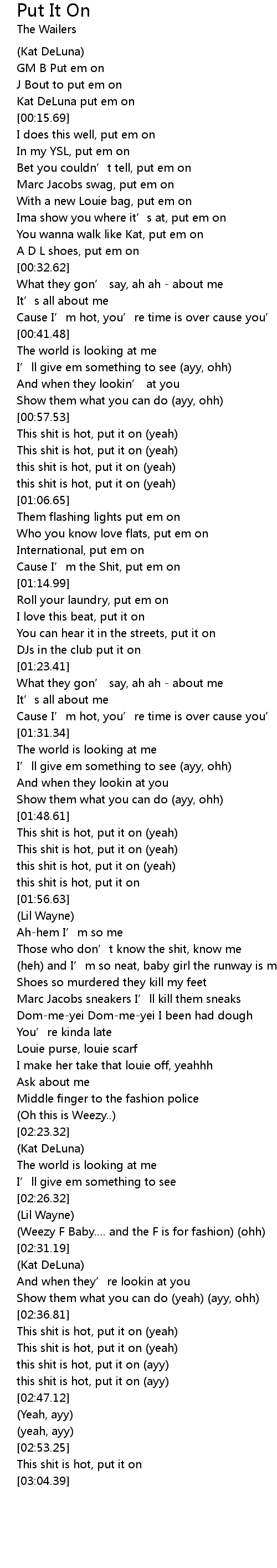 | [00:12.63] | Kat DeLuna put em on |