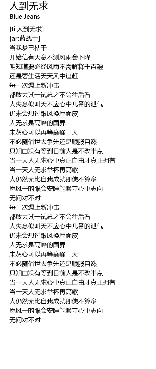 | [03:38.461] | 当一天人无求心中真正自由才真正拥有 |