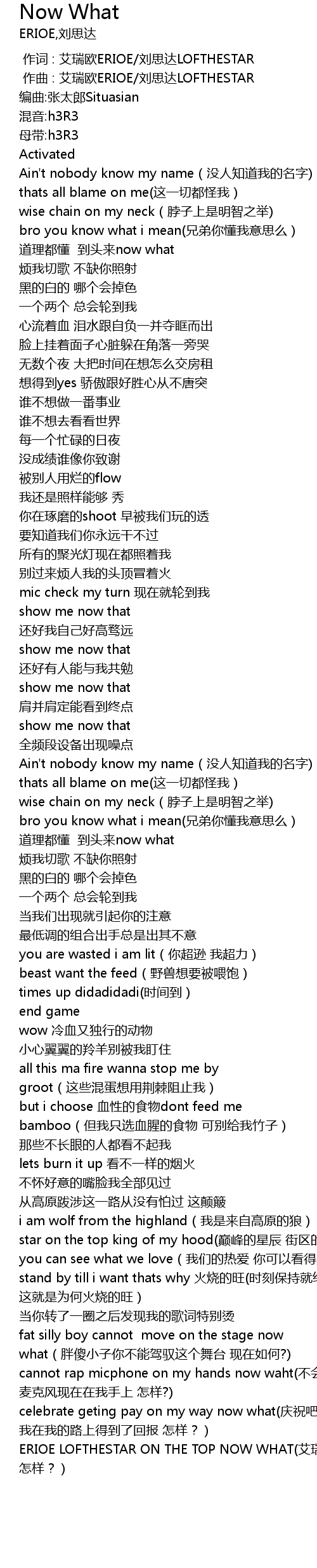 | [02:45.609] | ERIOE LOFTHESTAR ON THE TOP NOW WHAT(艾瑞欧 刘思达 站在最顶 怎样?) |