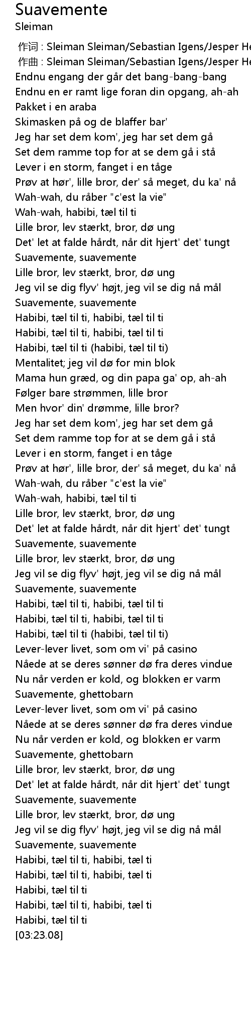 | [00:00.00] | 作词 : Sleiman Sleiman/Sebastian Igens/Jesper Helles/Esben Zefting |