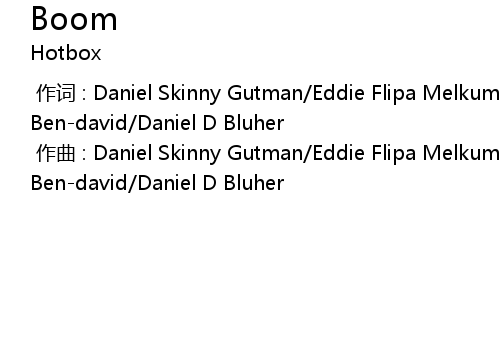| [00:00.00-1] | zuò qǔ : Daniel Skinny Gutman Eddie Flipa Melkumov Netanel SixPack Bendavid Daniel D Bluher |