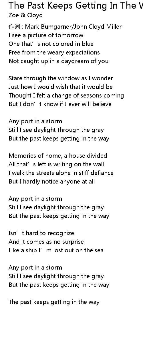 | Song | The Past Keeps Getting In The Way |
