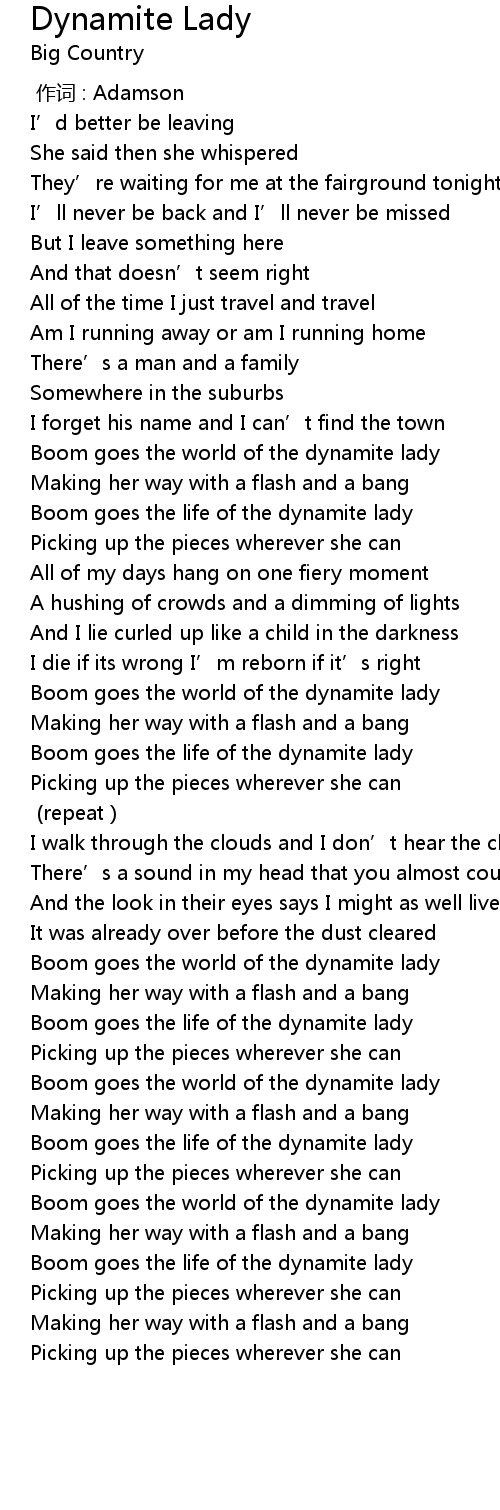 | [03:22.42] | Boom goes the world of the dynamite lady |