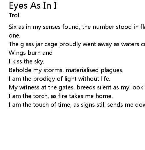 | Six as in my senses found, the number stood in flames, multiplied with me and one. | |