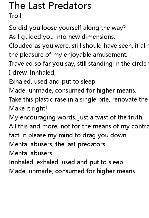 All this and more, not for the means of my control, but simply for a single fact: it please my mind to drag you down. |