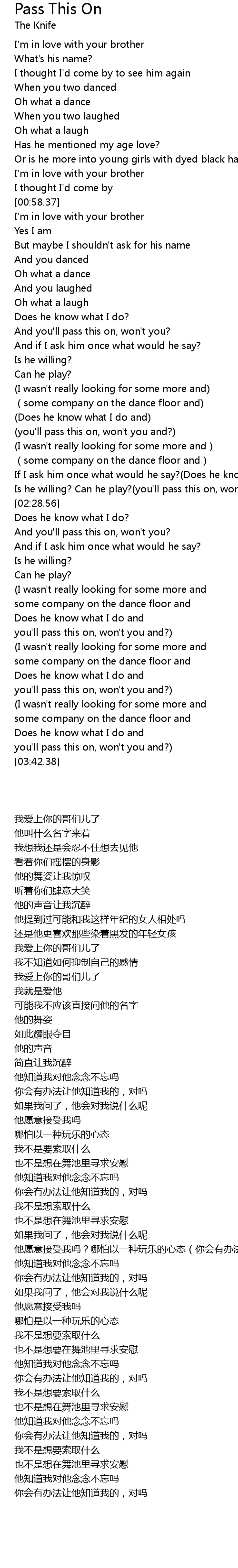 | [03:38.69] | you'll pass this on, won't you and?) |