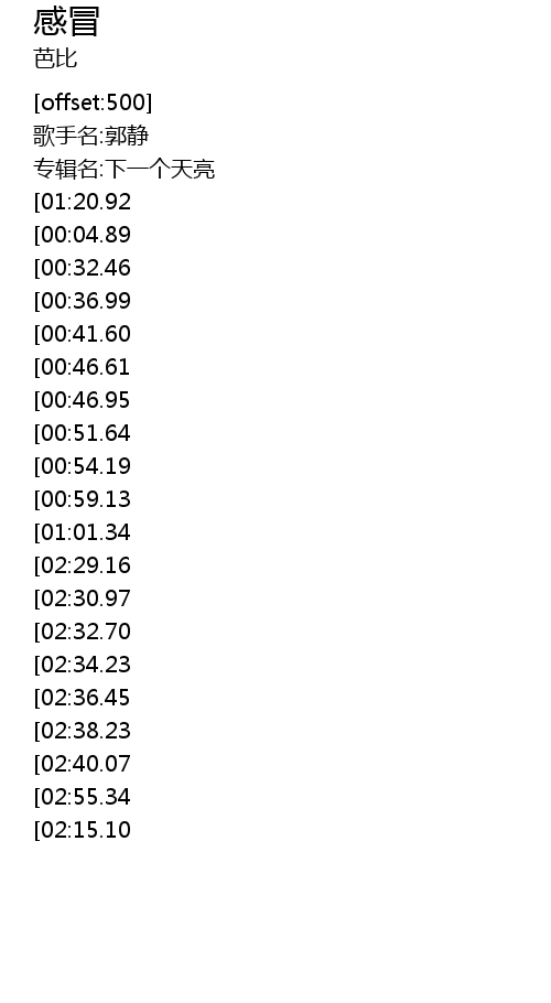 | [03:14.72][01:20.92][00:00.87] | 郭静 - 感冒 |