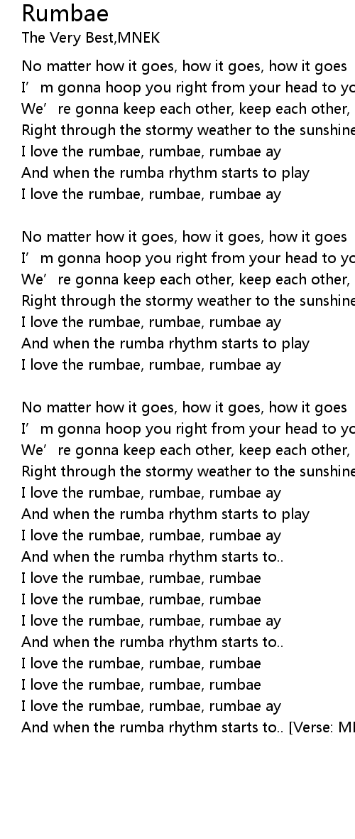 | And when the rumba rhythm starts to.. Verse: MNEK |