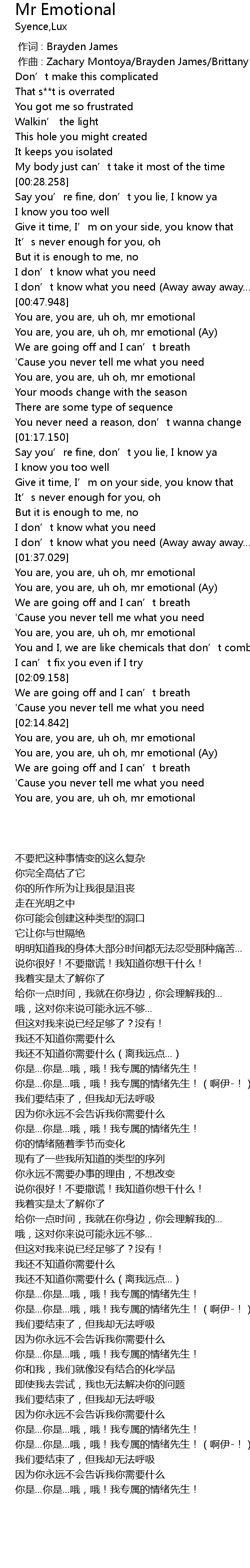 | [00:53.304] | You are, you are, uh oh, mr emotional Ay |
