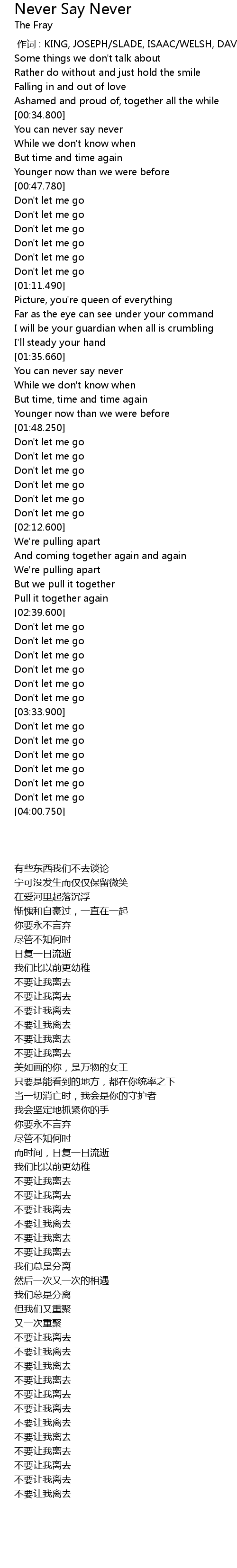 | [03:34.930] | Don' t let me go |