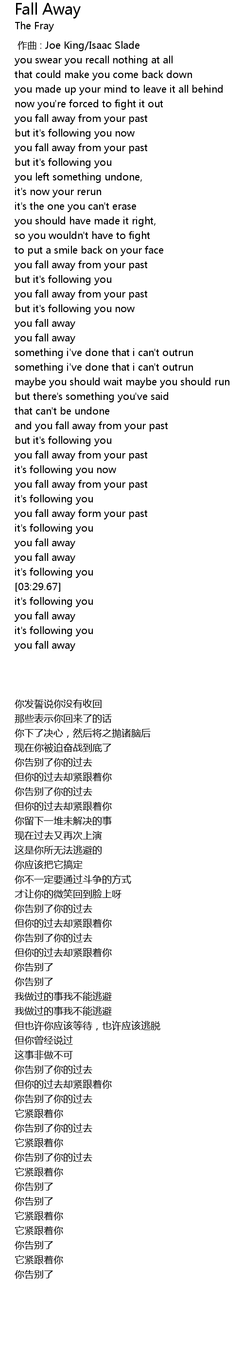 | [00:00.00] | 作曲 : Joe King/Isaac Slade |