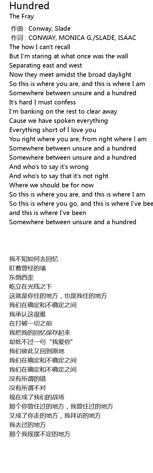 | [03:48.560] | Somewhere between unsure and a hundred |