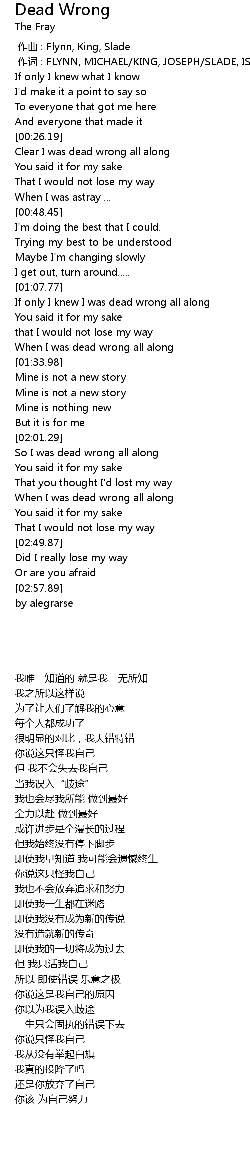 | [02:33.20] | When I was dead wrong all along |